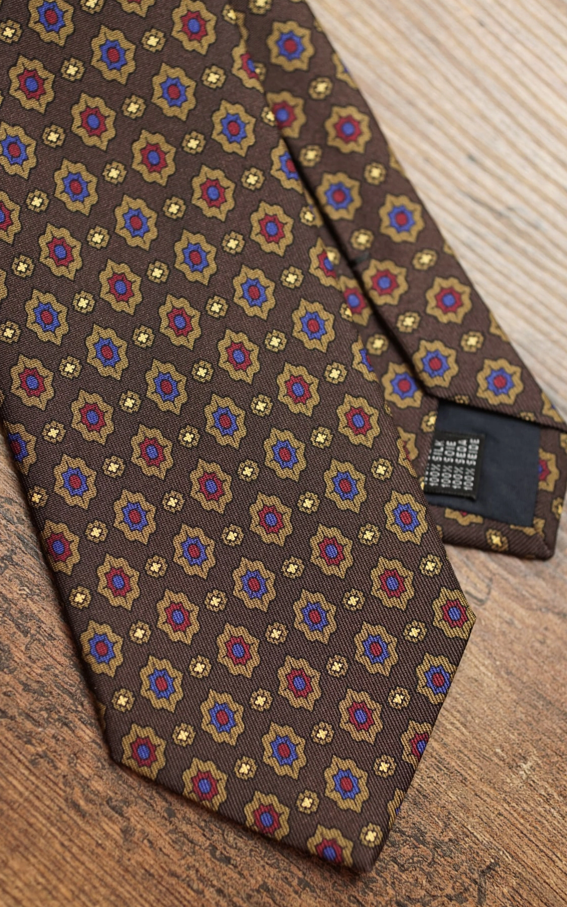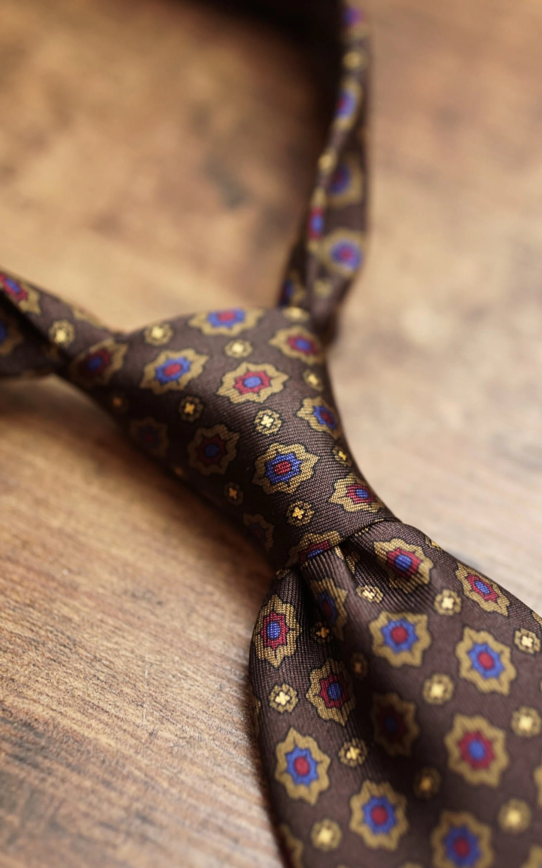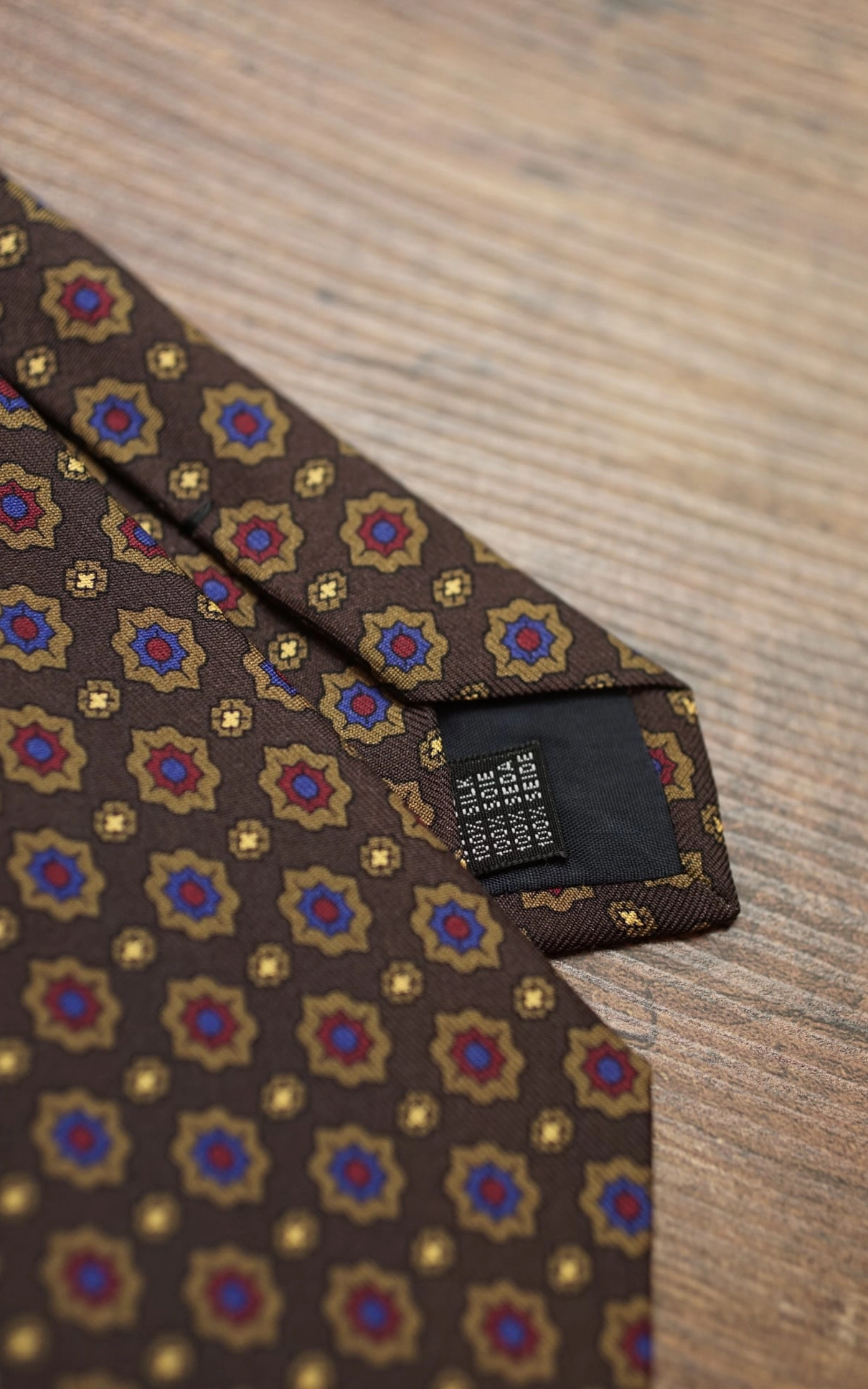 Brown silk tie with oriental patterns