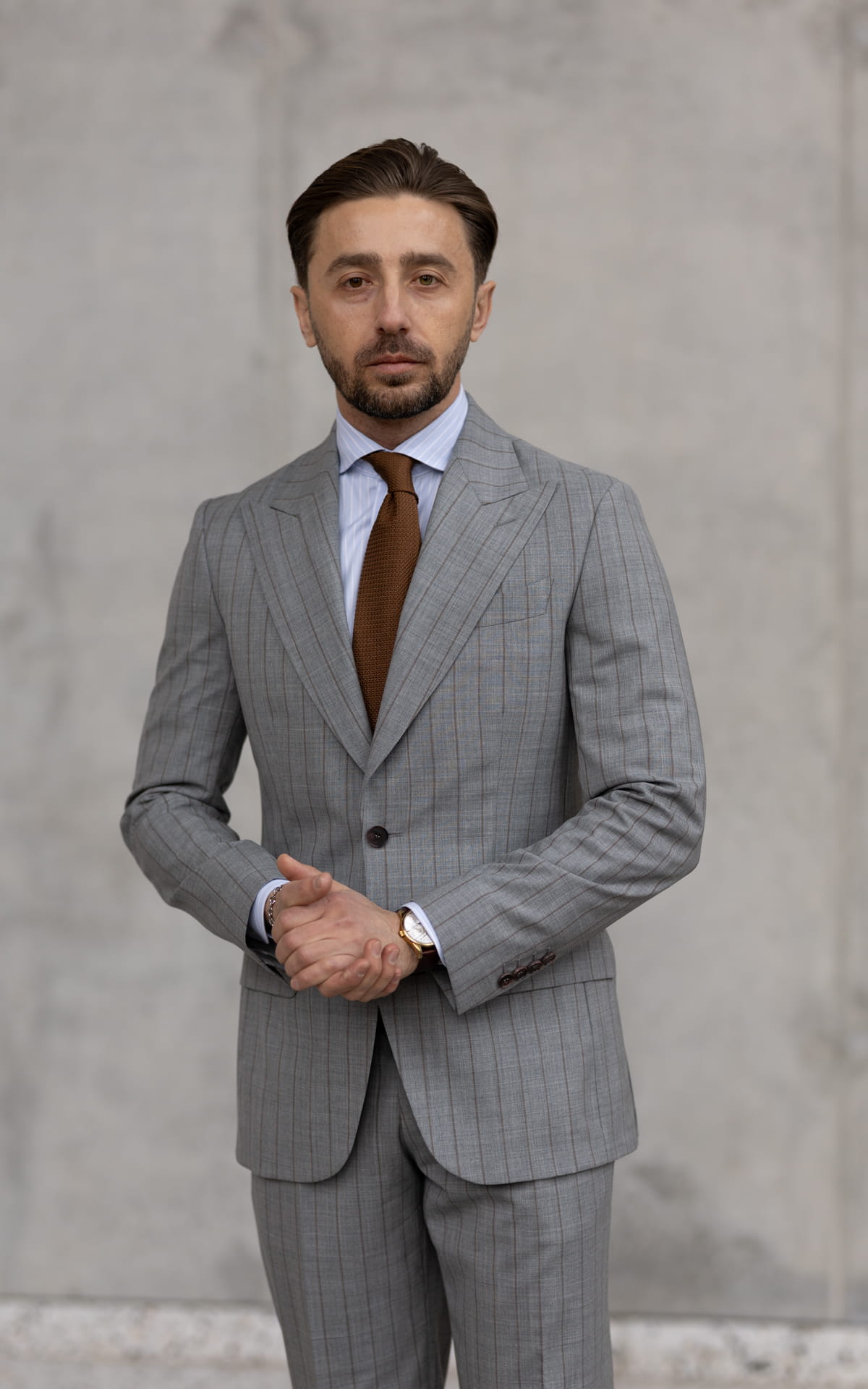 Daytona grey suit in a subtle pinstripe