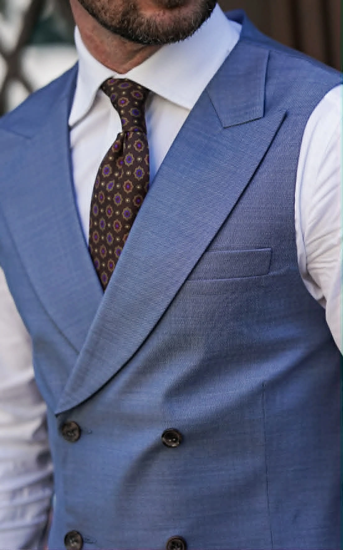 The vest has a back made from the same fabric as the front, allowing it to be worn separately in smart-casual outfits without a blazer.