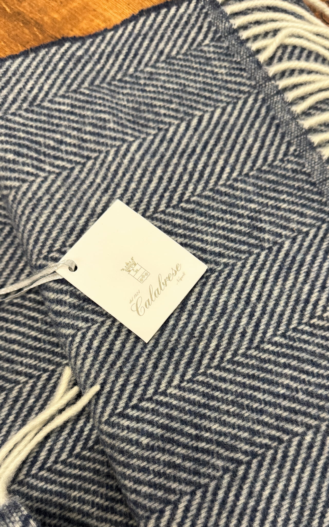 Herringbone Navy Scarf Calabrese 1924, 100% Wool