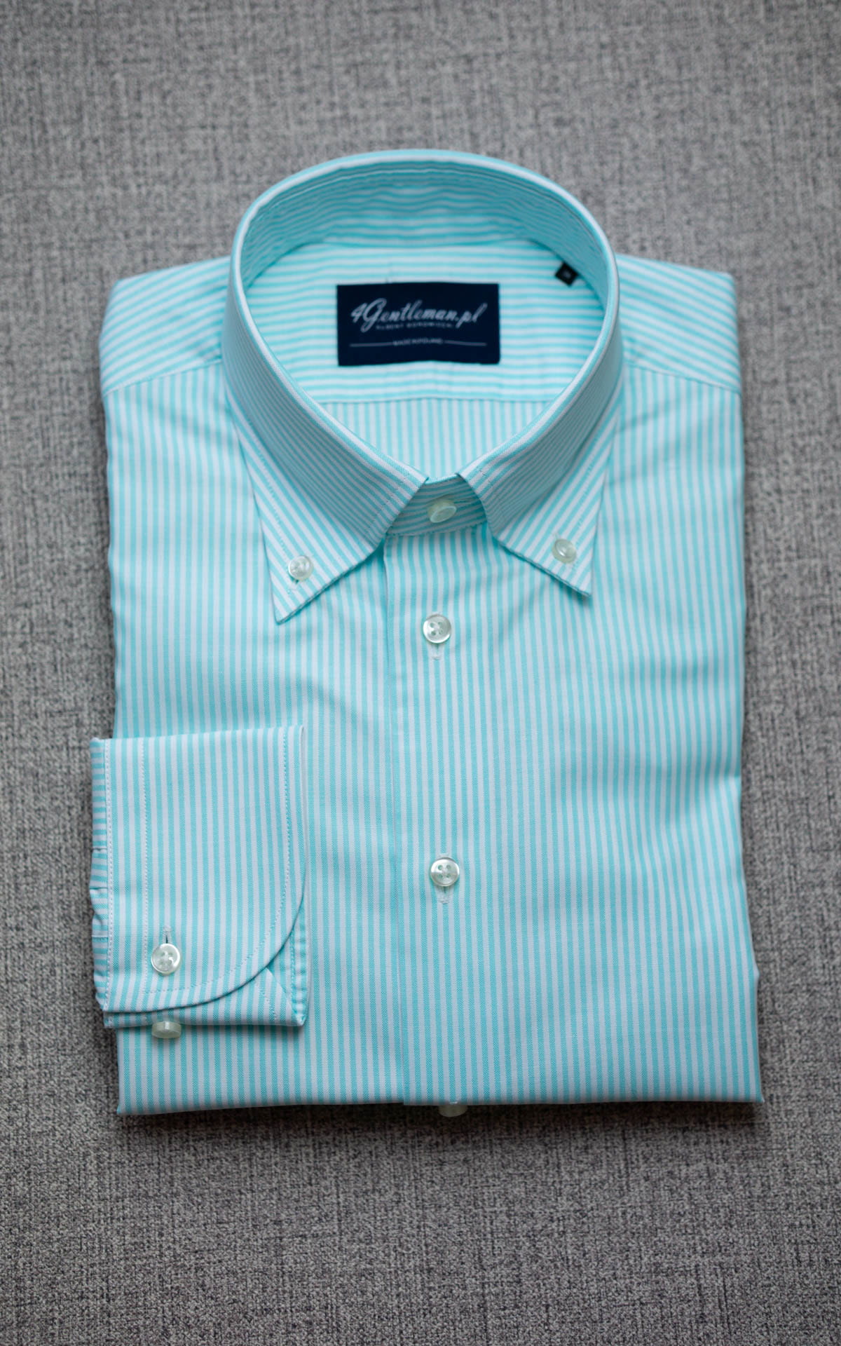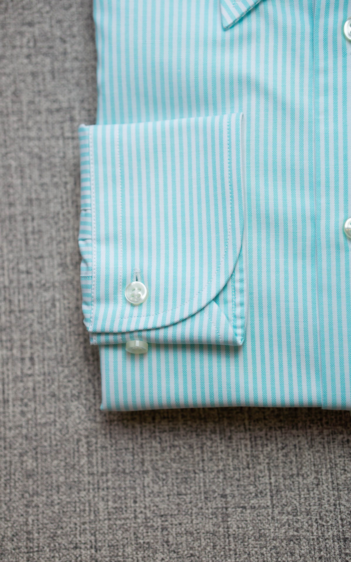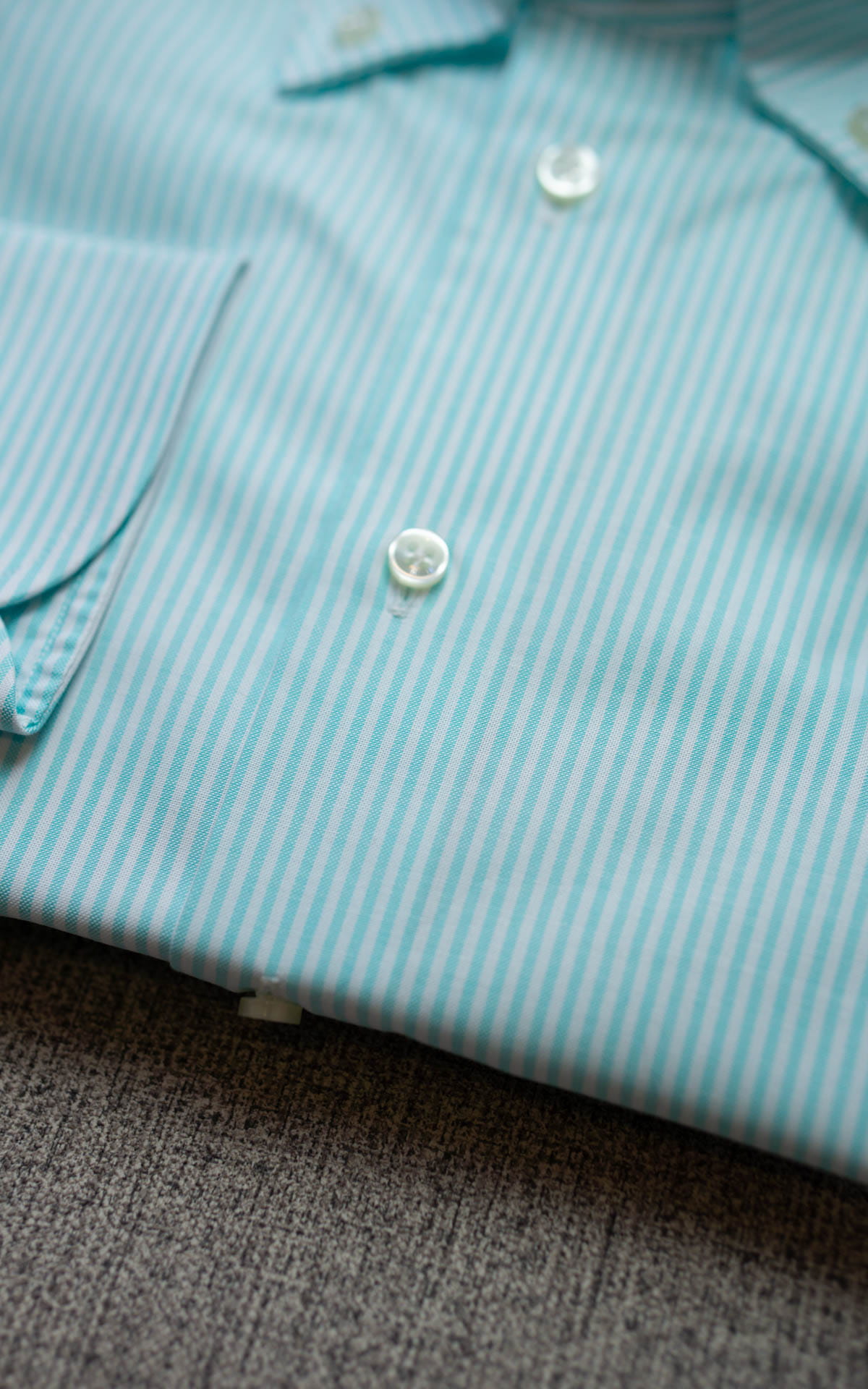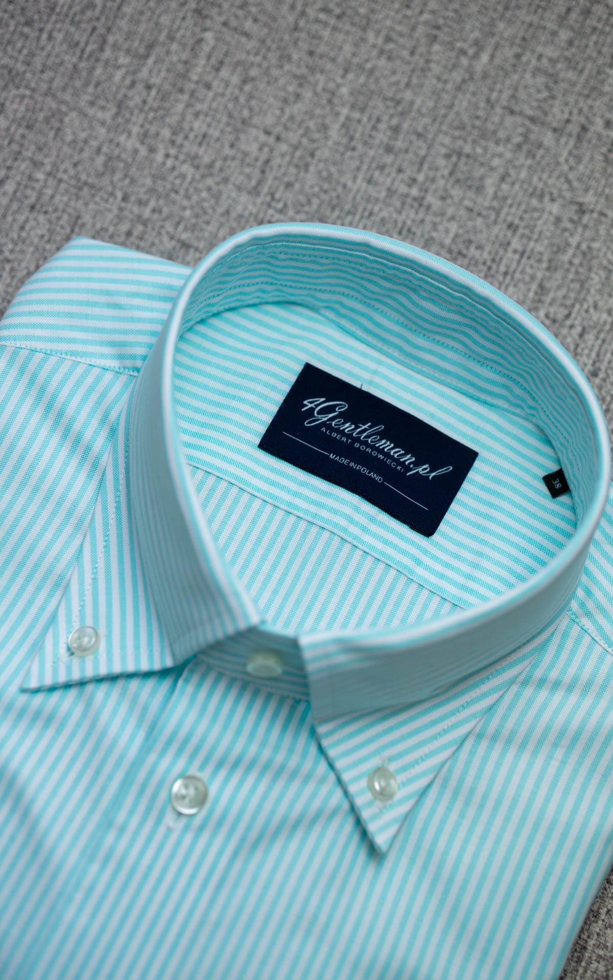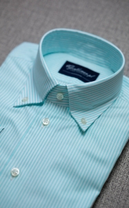 This mint striped Oxford shirt is perfect for casual wear. The subtle mint stripe adds a fresh touch, making it ideal for outfits without a blazer or with rolled-up sleeves. Although it can be paired with a blazer or suit, it is not suited for formal settings where a more traditional dress shirt is required.