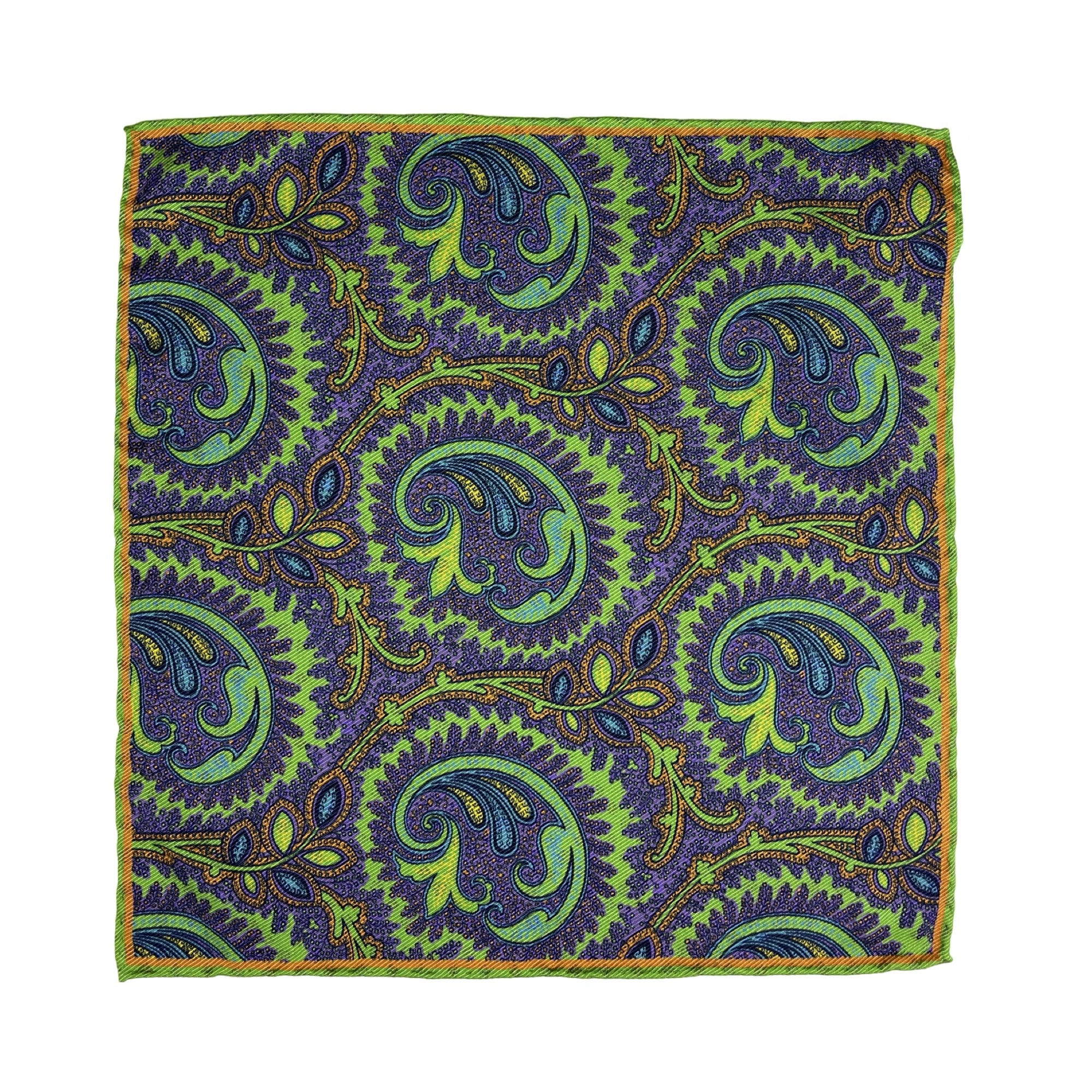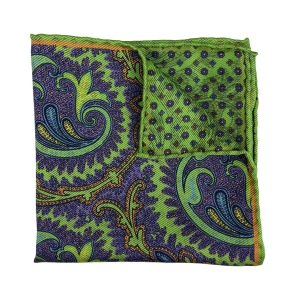 Paisley Verde, Calabrese 1924 Pocket Square, 100% Silk