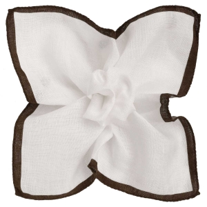 A linen pocket square with a rolled edge and a green border. The size of the pocket square is 33 x 33 cm. The pocket square is made of fleshy linen and does not fall into the breast pocket.