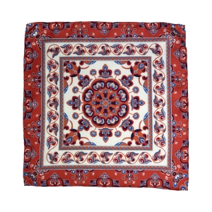 Red Ornament, Calabrese 1924 Pocket Square, 100% Silk