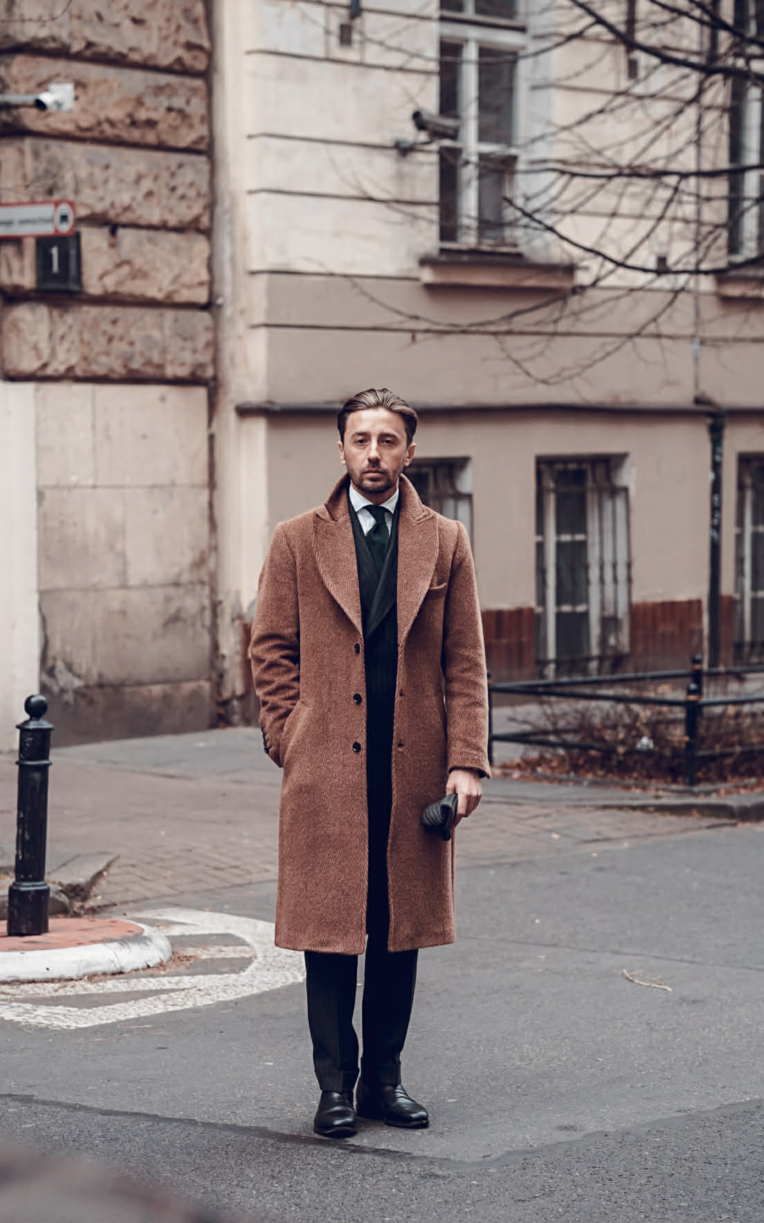 The Sankt Moritz coat is crafted from premium-quality alpaca wool, offering exceptional warmth, softness, and breathability. Designed in a classic single-breasted silhouette with three buttons and sharp peak lapels, it features light shoulder padding that enhances the elegance and structure of the shoulder line.